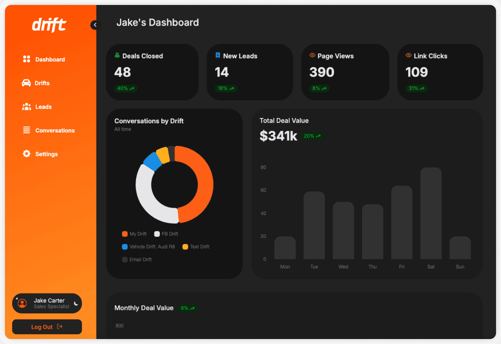 Drift was created specifically for dealership salespeople. We offer enterprise options at the dealership level.